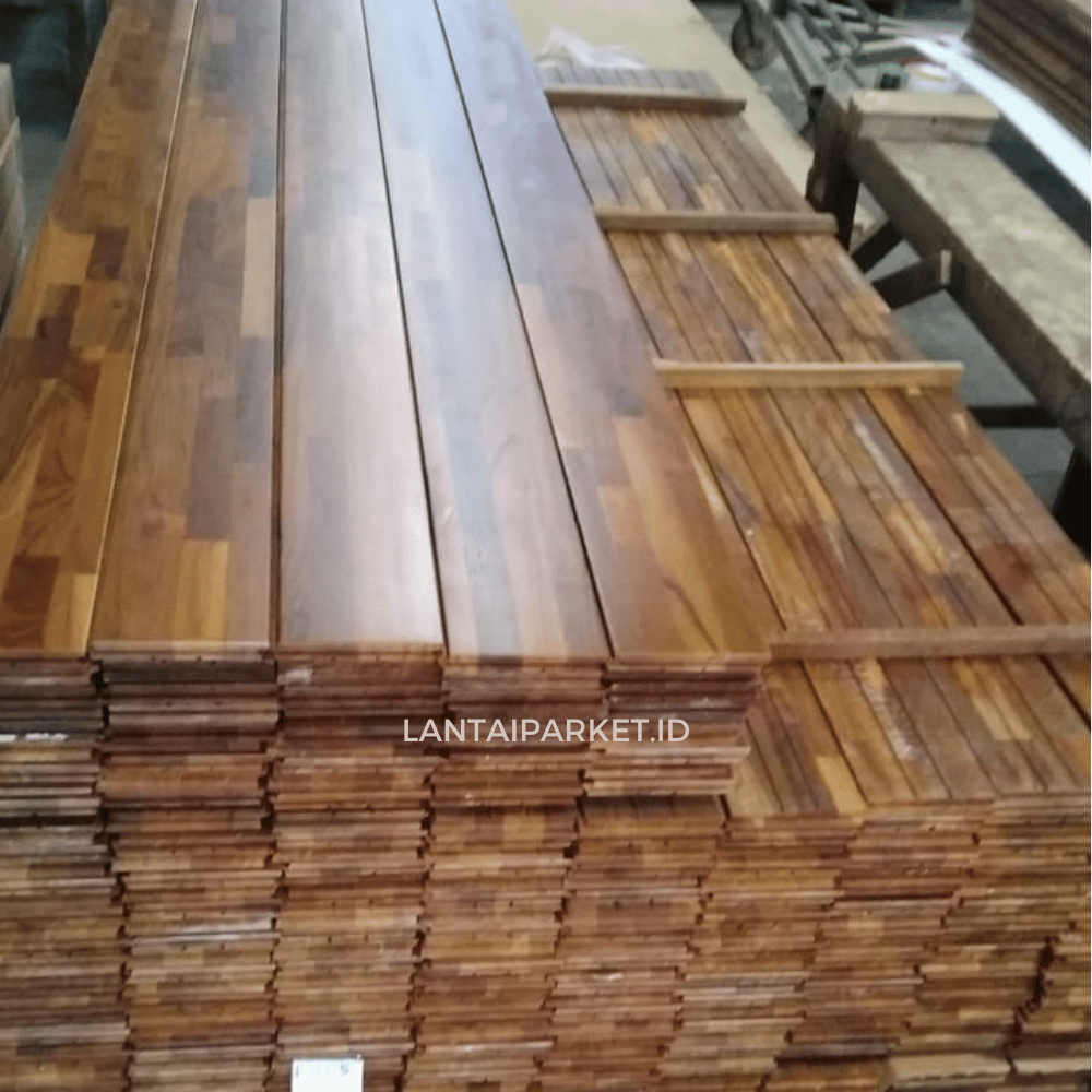 Jati Flooring Solid FJ Uni Japan UV Coating serta Jati FJ Flooring Solid T&G AB Grade – UV Coating Finishing hadir sebagai solusi terbaik untuk Anda. Mengusung kualitas kayu jati asli, produk ini diproses dengan sistem Finger Joint (FJ) Uni dan Tongue & Groove (T&G), lalu dilapisi dengan UV Coating Finishing khas Jepang yang membuat permukaan lantai lebih tahan gores dan tampak mengilap mewah.